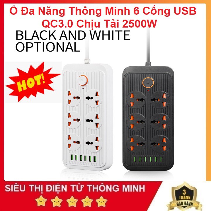 Sản Phẩm Mới Ổ Cắm Điện Đa Năng Thông Minh A07 Kiêm Sạc 6 Cổng USB Sạc Nhanh QC3.0, Có 6 Ổ Điện Chịu Tải 2500W, Tiết Kiệm Điện, Chống Cháy Nổ🎁follow shop mình sẽ có giảm giá ~