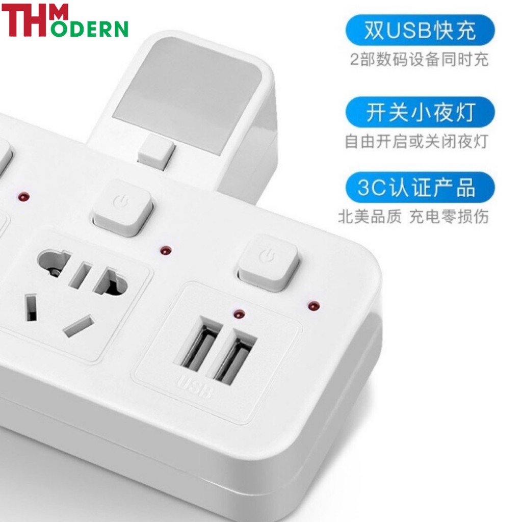 ✅Ngoài ra còn được tích hợp 2 khe cắm USB, có thể sạc cho tất cả các thiết bị di động sử dụng cổng USB như IPhone, Ipad