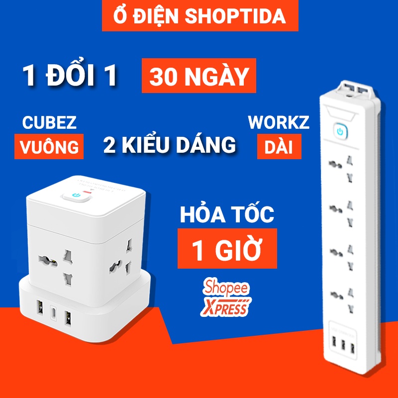 Giới thiệu Ổ Điện Đa Năng USB SHOPTIDA Chịu Tải 2500W CUBEZ/ WORKZ/ K6, An Toàn Chống Cháy Chống Giật, Dây Dài 1.6 và 2.4m