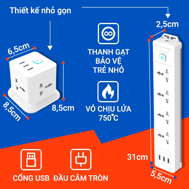 Thiết Bị Điện Gia Dụng > Mạch điện & Phụ tùng > Ổ cắm điện & Dây nối || Ổ Điện Đa Năng USB SHOPTIDA Chịu Tải 2500W CUBEZ/ WORKZ/ K6, An Toàn Chống Cháy Chống Giật, Dây Dài 1.6 và 2.4mCòn hàng