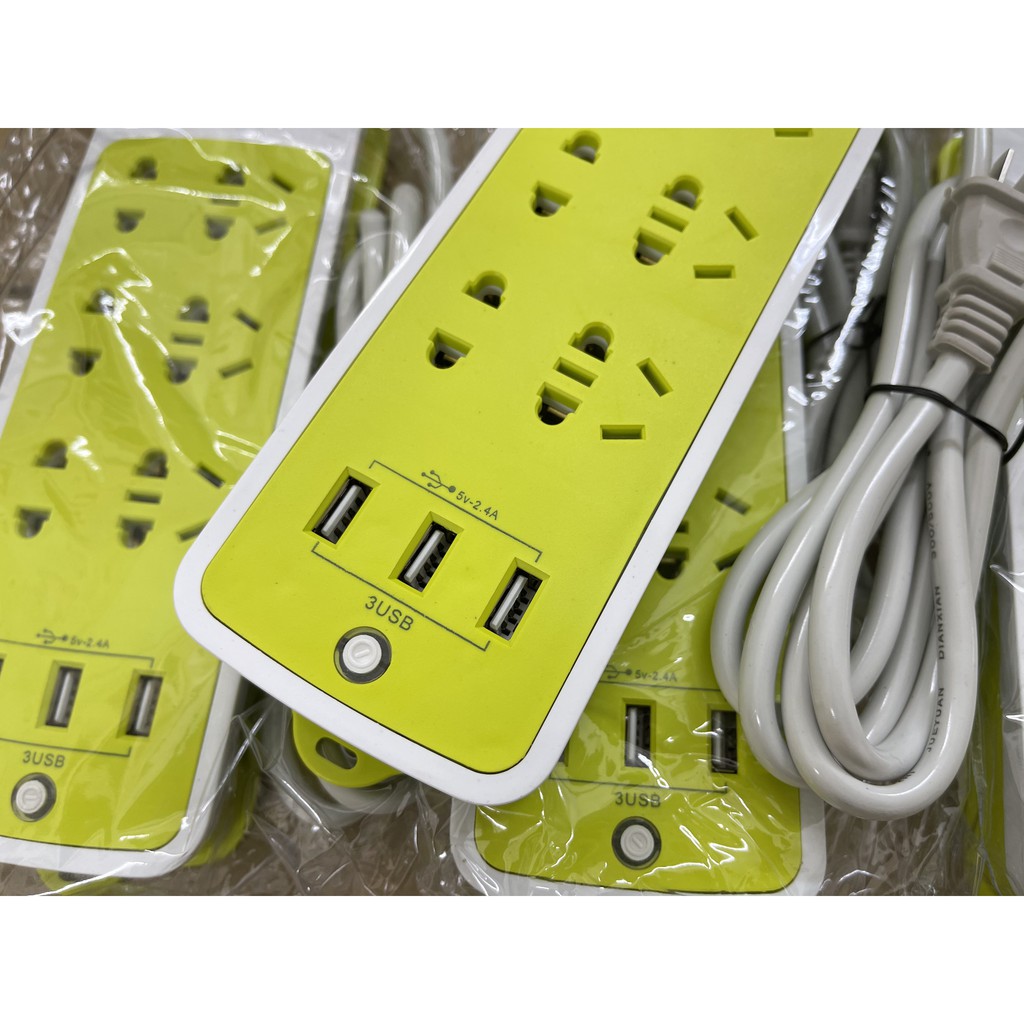 Ổ điện dây 1.4 mét 3 cổng usb điện thoạiỔ cắm điện 6 phích cắm 3 cổng usb là dòng sản phẩm mới nhất được sản xuất trên dây truyền công nghệ cao , với 6 ổ cắm cùng 3 khe cắm USB cho phép người dùng sạc pin smartphone mà không cần tới củ sạc
