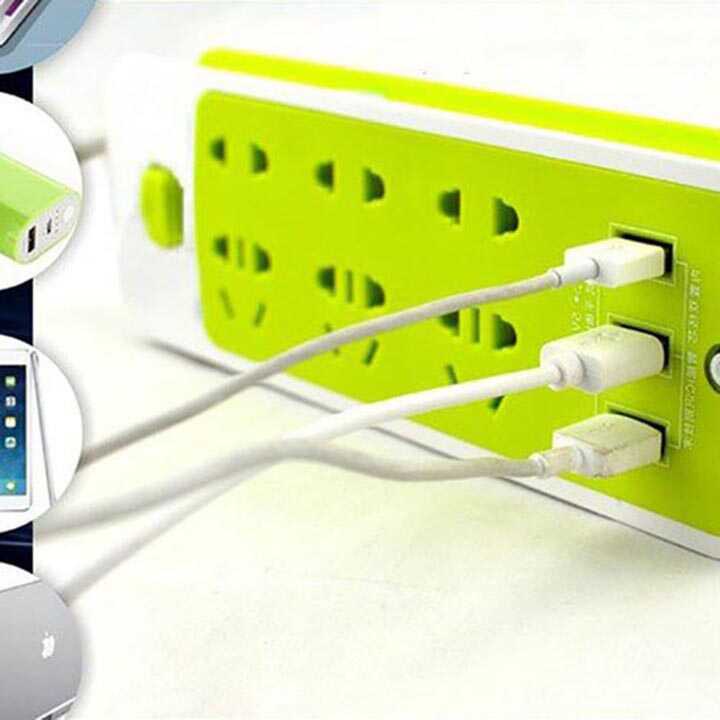 Thiết Bị Điện Gia Dụng > Mạch điện & Phụ tùng > Ổ cắm điện & Dây nối || Ổ điện - ổ cắm điện đa năng chống giật -ổ cắm điện thông minh kèm cổng sạc USB (6 phích cắm, 3 USB)Còn hàng