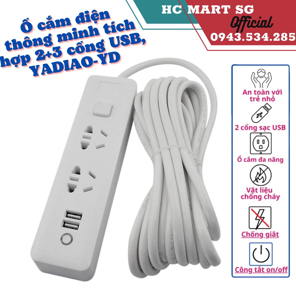 Thiết Bị Điện Gia Dụng > Mạch điện & Phụ tùng > Ổ cắm điện & Dây nối || Ổ điện, Ổ Cắm Điện Thông Minh Tích Hợp 2+3 cổng USB, YADIAO-YD - Đa năng - Tiện dụng - Bảo hành Uy Tín - SALE 50%Còn hàng