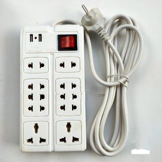 Thiết Bị Điện Gia Dụng > Mạch điện & Phụ tùng > Ổ cắm điện & Dây nối || Ổ điện P8 2U gồm 8 ổ cắm và 2 cổng cắm usb công suất 2500wCòn hàng