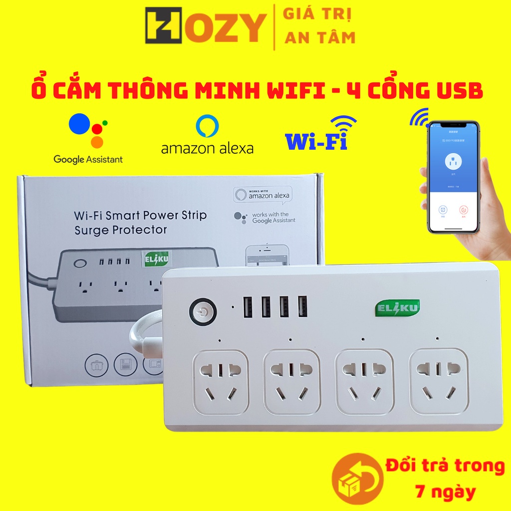 Ổ điện wifi Tuya 4 ổ cắm và USB điều khiển từ xa công suất cao bảo vệ chống cháy Eliku