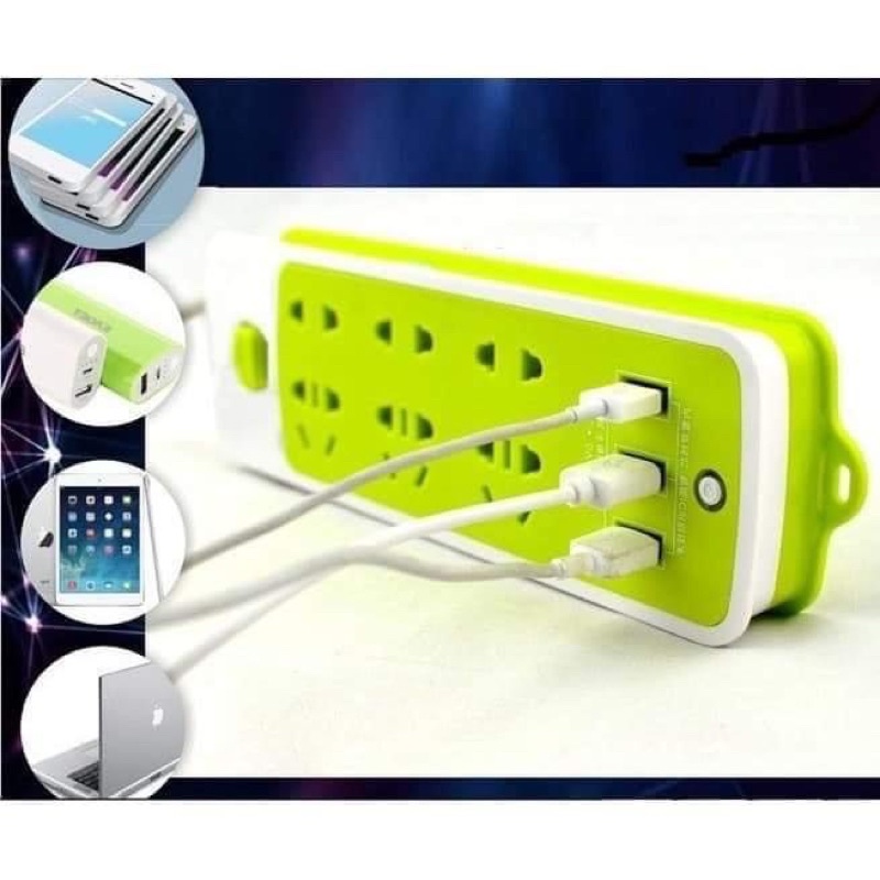 Ổ điện xanh chống giật 6 phích cắm 3 cổng usb đa năng tiện lợi an toàn