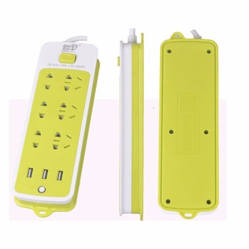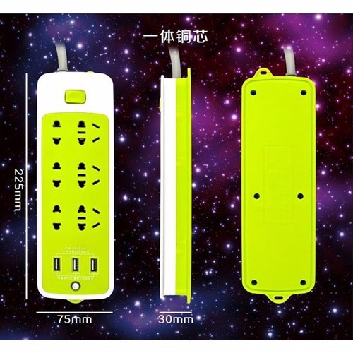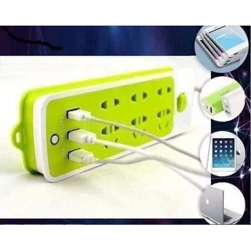 Ổ điện xanh đa năng chống giật co khe cắm usb✔ 6 ổ cắm và 3 cổng USB để sạc điện thoại.