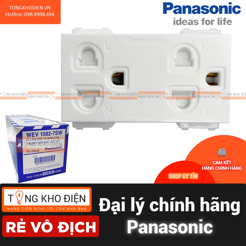 Thiết Bị Điện Gia Dụng > Mạch điện & Phụ tùng > Ổ cắm điện & Dây nối || Ổ đôi 3 chấu Panasonic, Có màn che và dây nối đất WEV1582-7SW [Dòng WIDE]Còn hàng