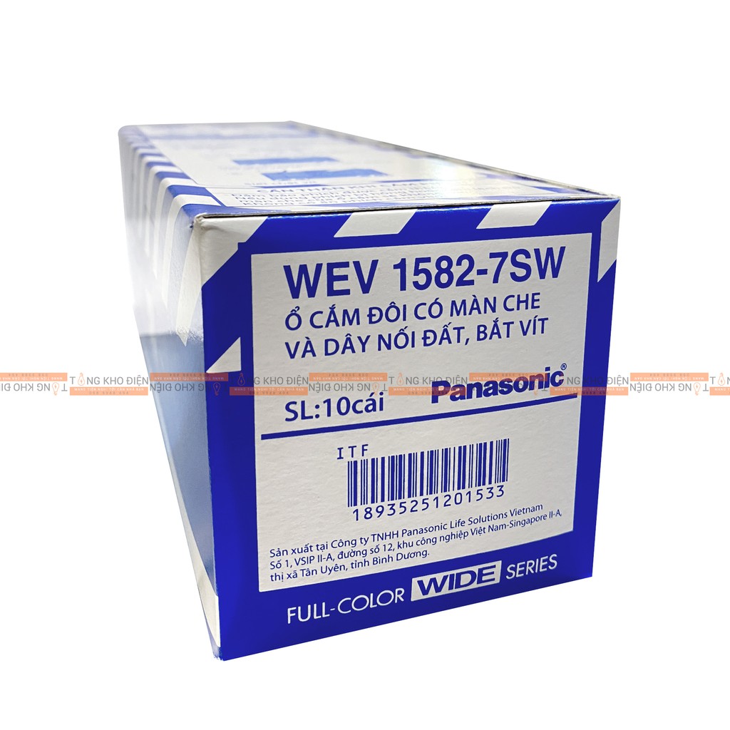 Ổ đôi 3 chấu Panasonic, Có màn che và dây nối đất WEV1582-7SW [Dòng WIDE]