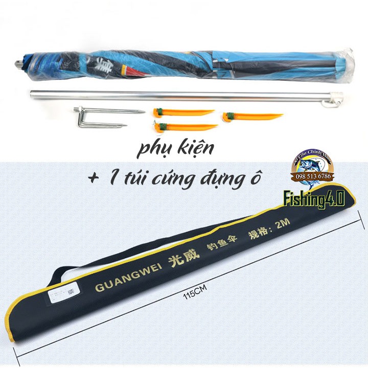 Ô câu cá,dù câu cá GW Chính hãng Rộng 2m - Chất Lượng Cao- Hàng chính hãng của thương hiệu GW Guangwei : trên bao đựng có mã vạch