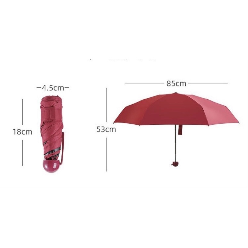 Chiếc ô này được đựng trong hộp hình viên nang rất dễ thương, chống nước. Khi đi dù ướt vẫn có thể bỏ vào túi xách mà k sợ bị ướt.