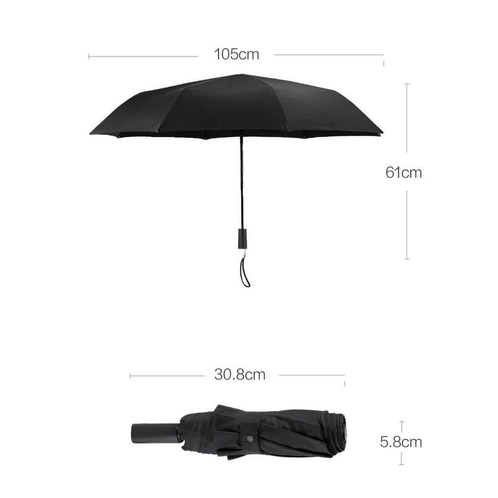 Tán rộng 98cm, gấp gọn cao 28cm bỏ túi vô tư.