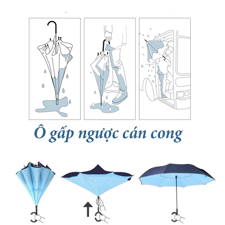 Thể Thao & Dã Ngoại > Phụ Kiện Thể Thao & Dã Ngoại > Ô/Dù || Ô gấp ngược, dù đi mưa gấp ngược thông minh, ô mở ngược thông minh dùng cho xe hơi, tay cầm kiểu chữ CCòn hàng