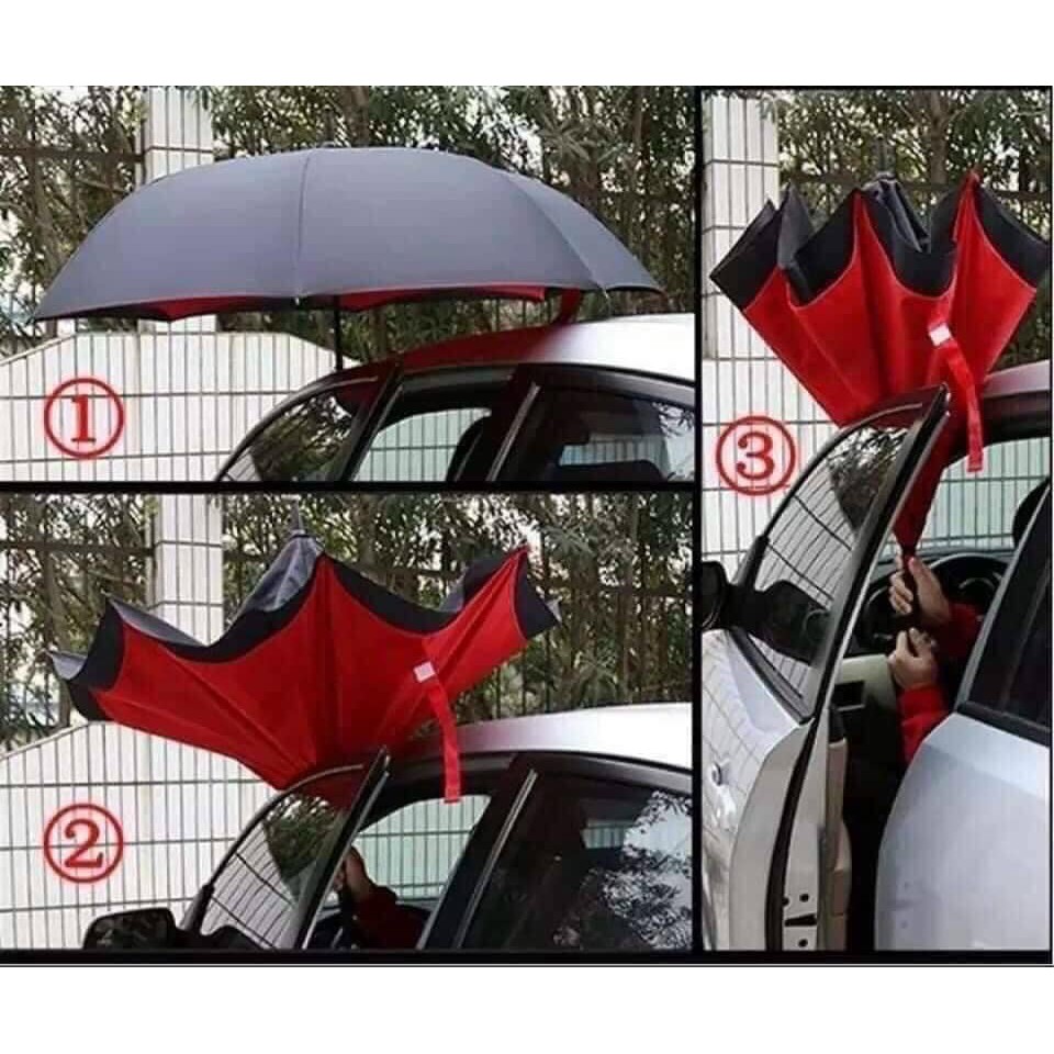 + Đóng/mở dù trong không gian hẹp. Do cơ chế mở ngược của dù, khi vào xe ô tô, bạn có thể đóng dù trong khoảng khe cửa hẹp nhất mà vẫn không bị ướt. Một điểm thú vị nữa là, mặt ướt của dù đóng vào bên trong. Điều này giúp bạn có thể vô tư để dù lên ghế ngồi mà không lo ghế ướt.