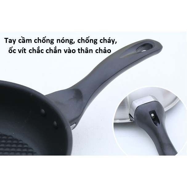 ❤❤Tay cầm bằng nhựa chống nóng, chống cháy an toàn và bền bỉ, có ốc vít chắc chắn vào thân chảo. Thiết kế có sẵn móc treo tiện lợi cất giữ.