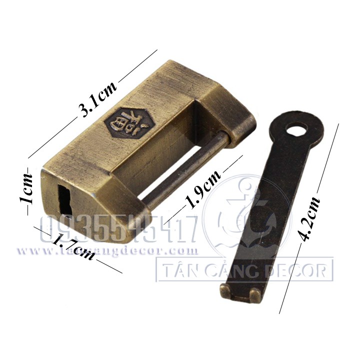 Ổ khóa 28 mạ đồng giả cổ - KT: 3.1cmKích thước: 3,1 x 1.7 cm