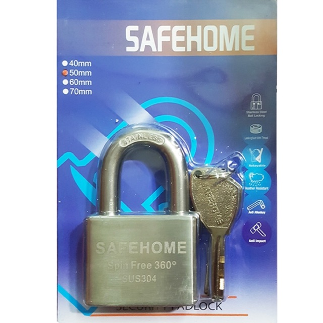 Ổ khoá 5 phân SAFEHOME inox 304 chống bẻ ruột khoá,đảm bảo an tâm người sử dụng,mang lại an toàn cho ngôi nhà của bạnSản phẩm gồm:1 ổ khoá và 4 chìa khoá