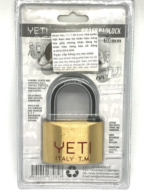 Giới thiệu Ổ khoá 6 phân YETI chính hãng chìa vi tính