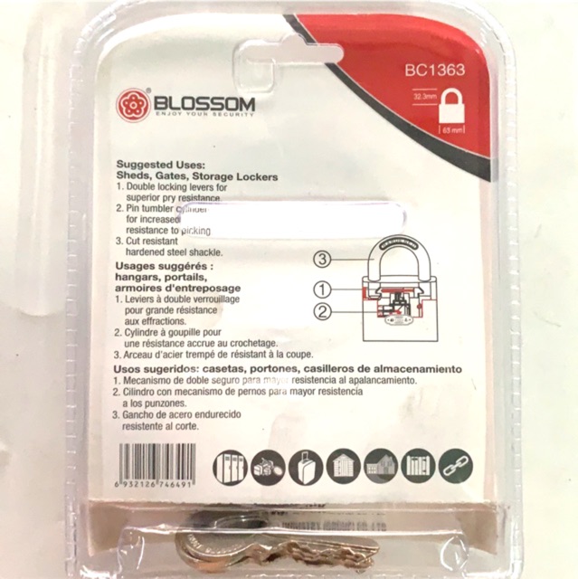 Ổ khoá 6 phân BLOSSOM chính hãng ,an toàn ,khoá bấm dễ sử dụng,có 2 miếng chặn cao su hạn chế tối đa nước và bụi vào bên trong khoá👍lưu ý:ổ khoá BLOSSOM khoá lại không cần chìa khoá(khoá bấm),thích hợp đứng bên ngoài khoá cửa bên trong