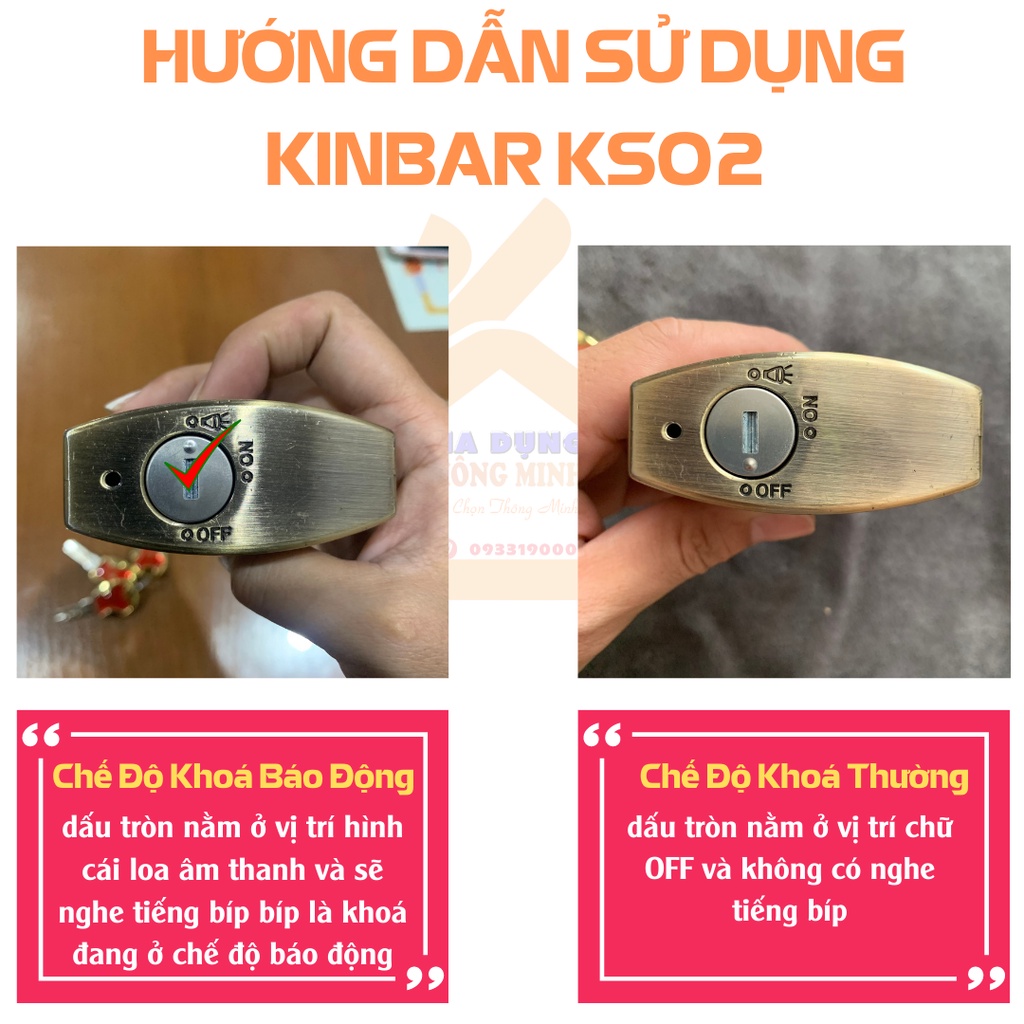 - Tên sản phẩm: Ổ khóa báo động cao cấp KINBAR KS 02 có còi báo động.