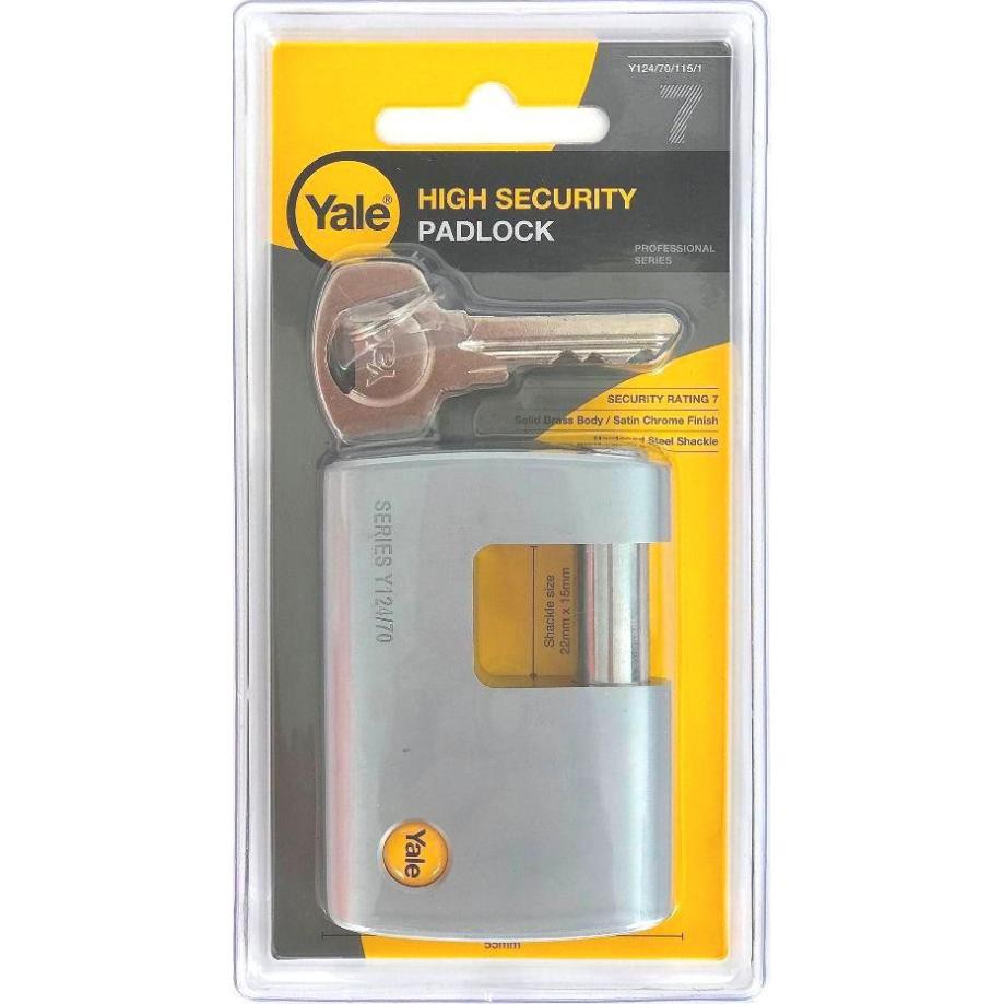 Ổ khóa cầu ngang Yale Y124/70/115/1- Thân khóa 72mm x 55mm. Khoảng trống bên trong càng khóa: rộng 22mm, cao 15 mm. Đường kính càng khóa: 11 mm