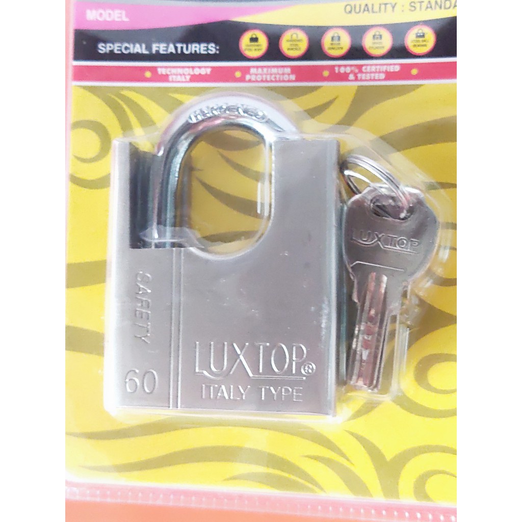 Sản xuất theo công nghệ của ITALY , ổ khóa LUXTOP làm bằng thép, lõi bằng đồng, thân bằng đồng bên ngoài bọc thép không rỉ.