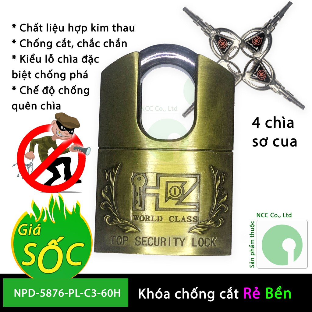 Giới thiệu Ổ khóa chống cắt PadLock 60mm cho gia đình - kho xưởng cực kỳ an toàn - NPD-5876-PL-C3-60H