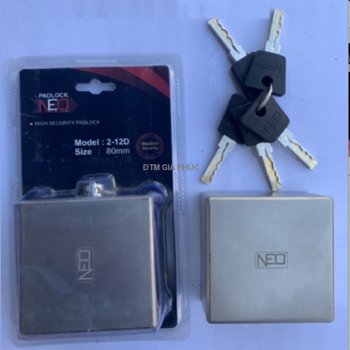 GIỚI THIỆU Ổ KHÓA CHỐNG CẮT TOÀN DIỆN NEO Mã sản phẩm: 2-12D Size: 80mm Trọng lượng: 700Gram Độ dày chốt khóa: 15mm ( quý khách chú ý đo lỗ pát cửa nhà mình trước khi mua nhé) SP bao gồm 1 ổ khóa và 5 chìaChức năng: