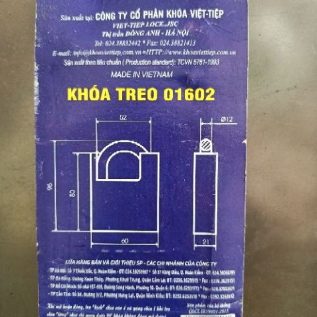 Khóa Việt tiệp là nhãn hiệu khóa nổi tiếng của Việt Nam, đạt danh hiệu Hàng Việt nam chất lượng cao nhiều năm liền.THÔNG TIN SẢN PHẨM: