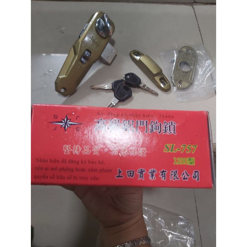 TIẾT SẢN PHẨMỔ khoá chốt cửa lùa hàng Đài loan 757 có ổ khoá lắp được cho cửa gỗ,cửa nhôm lùa,hàng đài loan đảm bảo yên tâm sử dụng(rất thích hợp lắp thêm cho cửa chung cư,cửa thông phòng)