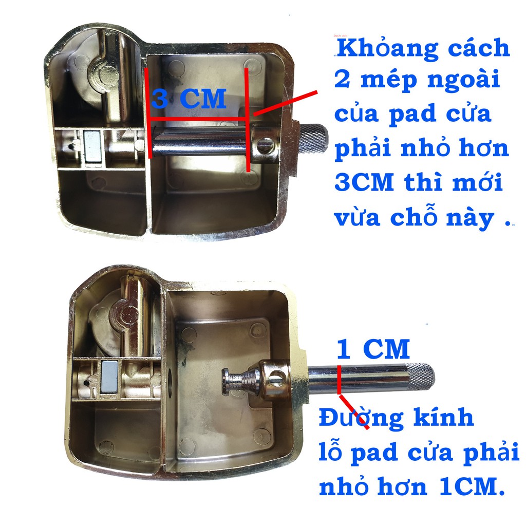 Khoảng cách tối đa 2 khoen cửa ( đo phía ngoài ) là 3CM ( nếu khoảng cách lớn hơn sẽ không sử dụng được )