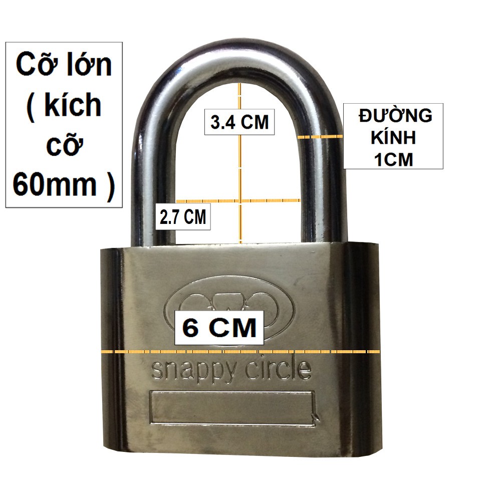 Ổ khóa cửa cỡ lớn 60 MM ( 3V) là loại ổ khóa cửa thông thường, có thể khóa cửa, khóa phòng, khóa với dây xích, dây cáp…., là loại khóa cỡ lớn thường dùng khóa cửa chính, cửa rào….LÀ KIỂU KHÓA DÍNH CHÌA: chìa khóa dính vào ổ khóa khi mở khóa, giúp bạn không quên chìa khi đi ra ngoài.