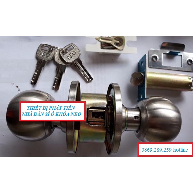 Ổ KHÓA TAY NẮM TRÒN NEOỔ Khóa Tay Nắm Tròn NEO Cao Cấp INOX 304 Gồm 3 Chìa Khóa, Chuyên Khóa Cửa Đi, Phòng, Tolet, Nhà Kho (Chính Hãng)