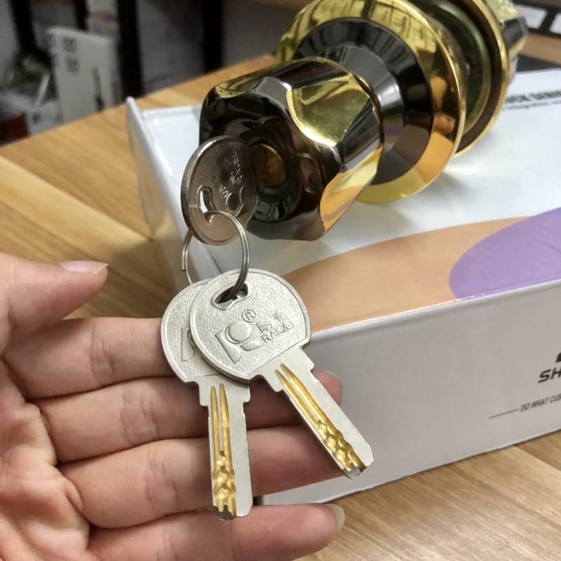 Nhà cửa & Đời sống > Bảo hộ gia đình > Khóa, ổ khóa || Ổ khoá đấm tròn hơp kim màu vàng nâu kết hợp chính hãng RAIQUEECòn hàng
