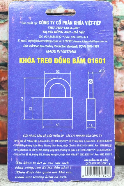 THÔNG TIN SẢN PHẨM:Ổ khóa VIỆT TIỆP một thương hiệu ổ khóa nổi tiếng uy tín nhất tại Việt Nam, dòng ổ khóa với những đặc trưng của thương hiệu như: