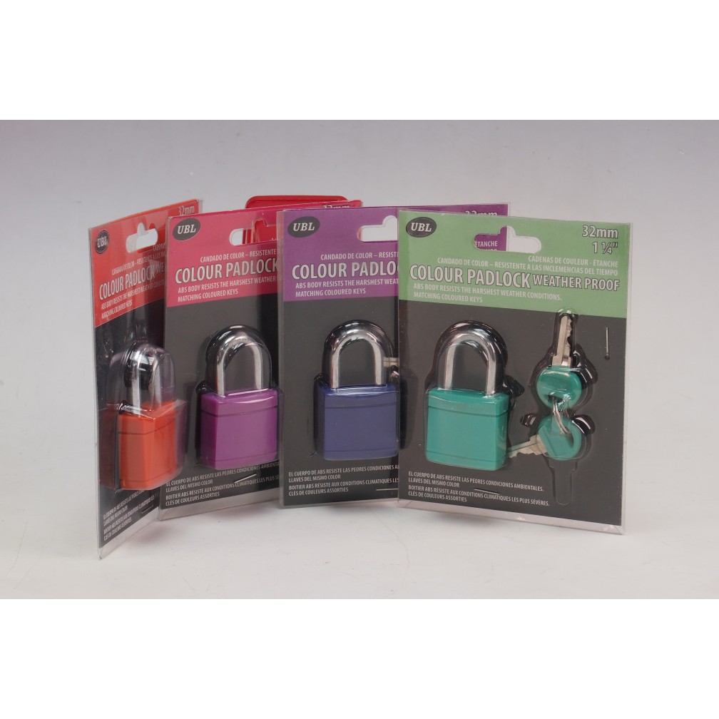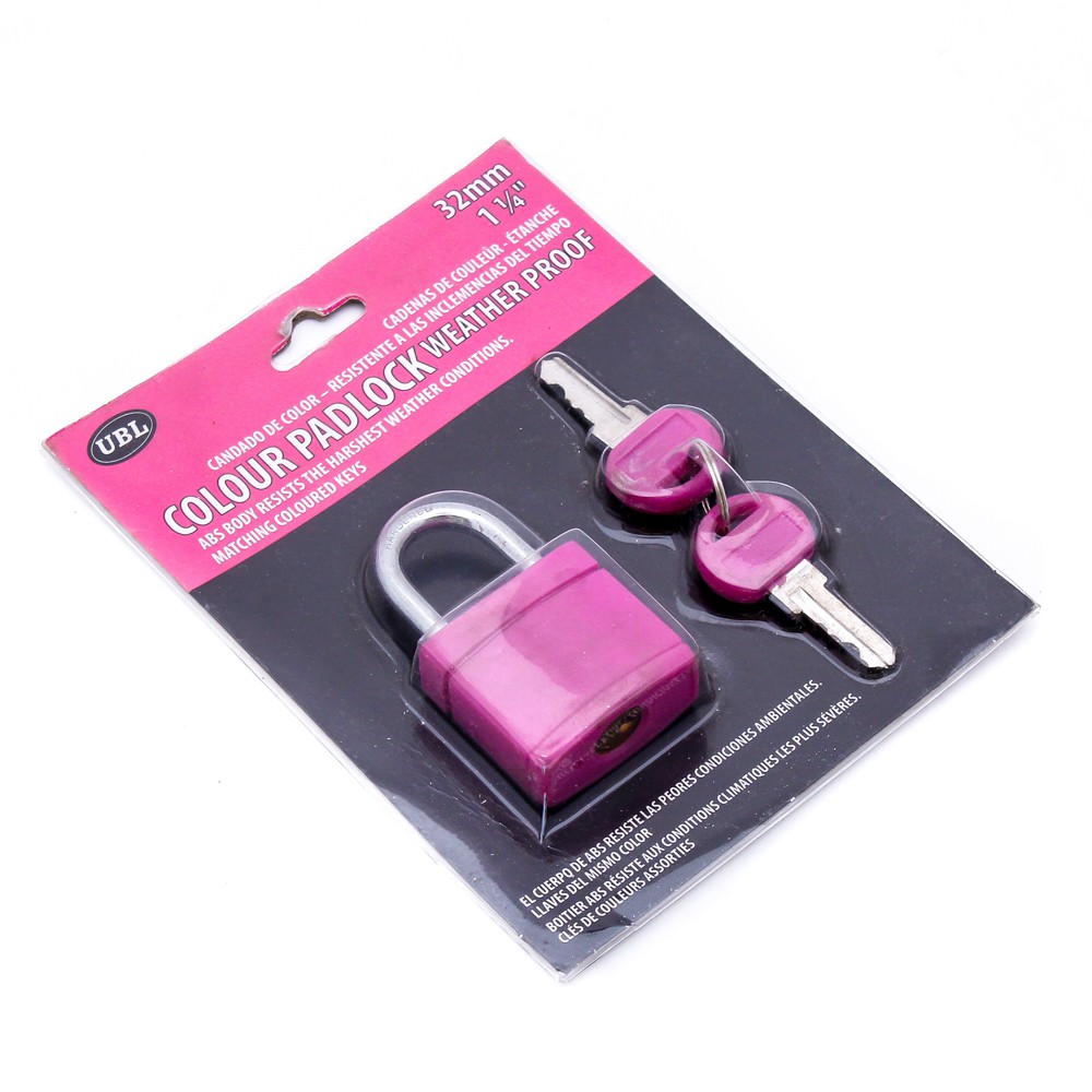 Ổ Khóa Màu UBL được làm bằng thép chắc chắn, kích thước nhỏ gọn 3,2cm giúp bạn khóa chắc chắn các loại tủ đựng nữ trang, tủ quần áo và vali du lịch. Khóa có 2 chìa, 1 chìa để sử dụng và một chìa sơ cua.Thiết kế với màu sắc thời trang, chìa và khóa đồng màu tạo được phong cách trẻ trung tại nơi sử dụng ổ khóa.