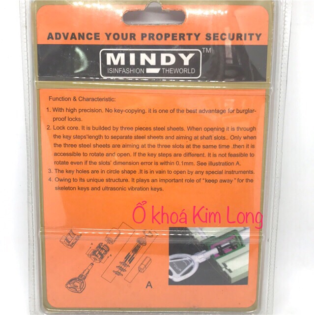 Ổ khoá Mindy 6 phân chống cắt chính hãng,an tâm khi sử dụngỔ khoá gồm có 4 chìa khoá,khoá lại phải cần chìa khoá(chống quên chìa)