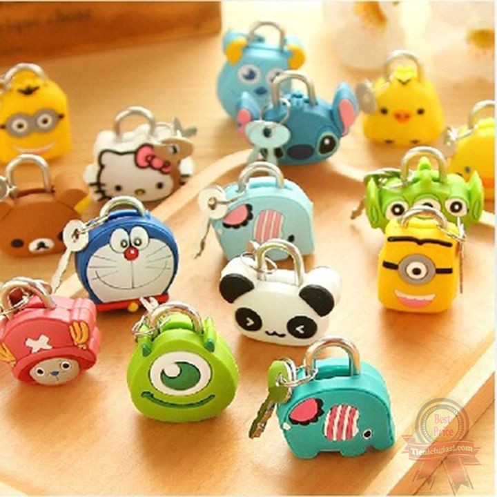• Chất liệu khóa kim loại không gỉ, bên ngoài là nhựa dẻo tạo được hình nhân vật ngộ nghĩnh: gà, voi, Doraemon, Kitty… Ổ khóa mini được thiết kế với kiểu dáng độc đáo, nhỏ gọn, giúp bảo vệ tài sản cá nhân hiệu quả. Chất liệu: silicon, thép Màu sắc: đa dạng