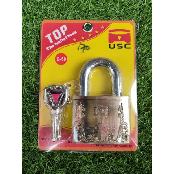 Ổ Khóa nhà loại Treo Pad Lock USC hoa văn bông Cao Cấp Xi Vàng 4 chìa hoả tiển 50mm 60mm