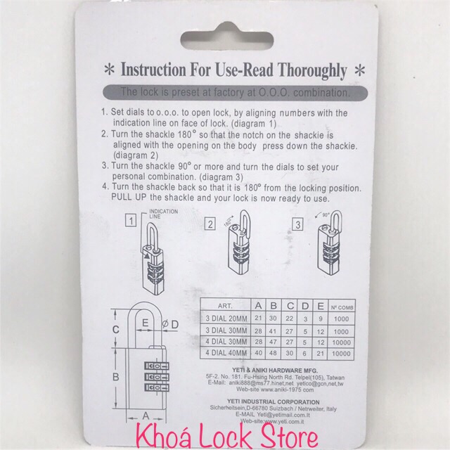 Nhà cửa & Đời sống > Bảo hộ gia đình > Khóa, ổ khóa || Ổ khoá số 3 phân YETI 330 chính hãngCòn hàng