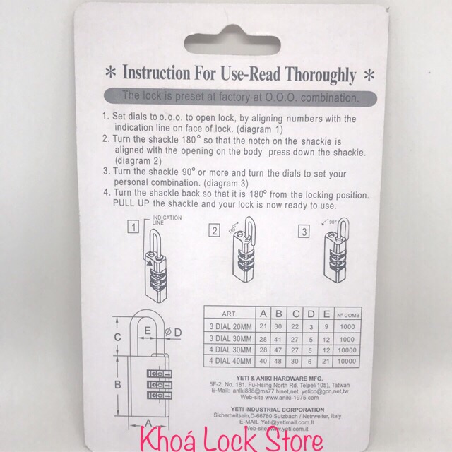 Nhà cửa & Đời sống > Bảo hộ gia đình > Khóa, ổ khóa || Ổ khoá số 4 phân YETI 440 chính hãngCòn hàng