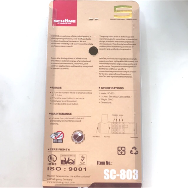 Nhà cửa & Đời sống > Bảo hộ gia đình > Khóa, ổ khóa || Ổ khoá số chữ U SCHONE SC-803 chính hãng chiều dài càng khoá 140mmCòn hàng