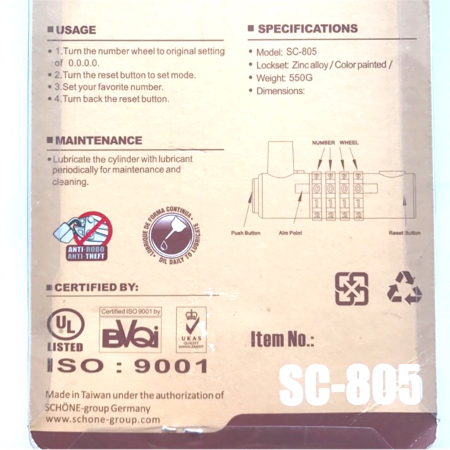 Nhà cửa & Đời sống > Bảo hộ gia đình > Khóa, ổ khóa || Ổ khoá số chữ U SCHONE SC-805 chiều dài càng 245mmCòn hàng