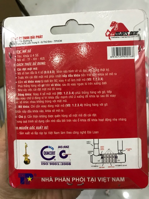 + Đóng khoá : Trước khi khoá thì phải xoay 4 số mật mã đúng về vị trí vạch nổi rồi đóng khóa . Sau đó xoay 4 số mật mã ra các vị trí bất kỳ khác để khoá .