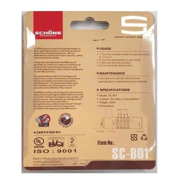 Giới thiệu Ổ Khóa Số Dạ Quang SCHONE SC-801 Cao Cấp ( Màu Đen )