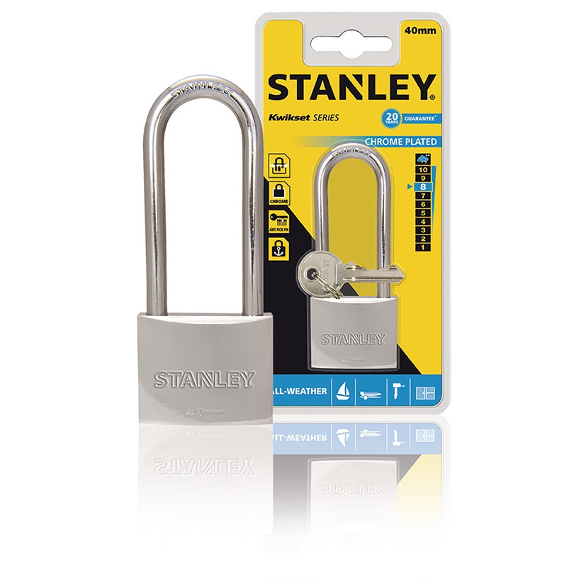 Nhà cửa & Đời sống > Bảo hộ gia đình > Khóa, ổ khóa || Ổ Khóa Stanley USA, Chrome trắng, càng dài, rộng 40mm- S742-016Còn hàng