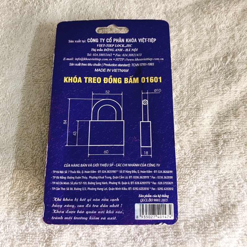 Giới thiệu Ổ Khoá treo đồng bấm VIỆT TỆP 01601 - cam kết chính hãng 100%