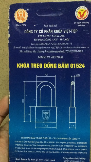 #ổkhóatreođồng 2 loại : nhỏ , lớn✔️Hàng khoá Việt Tiệp thì quá nổi tiếng luôn rồi ạ nên không cần giới thiệu nhiều ạ . Hàng Việt Nam chất lượng cao bán chạy nhất đấy ạ . Thông số kích thước khoá mn kéo hình xem ạ ❤️