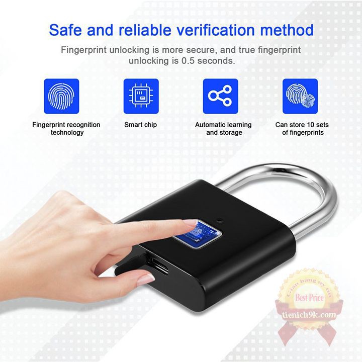 Ổ khóa vân tay chống trộm bằng thép không gỉ chống nước chống phá khóa