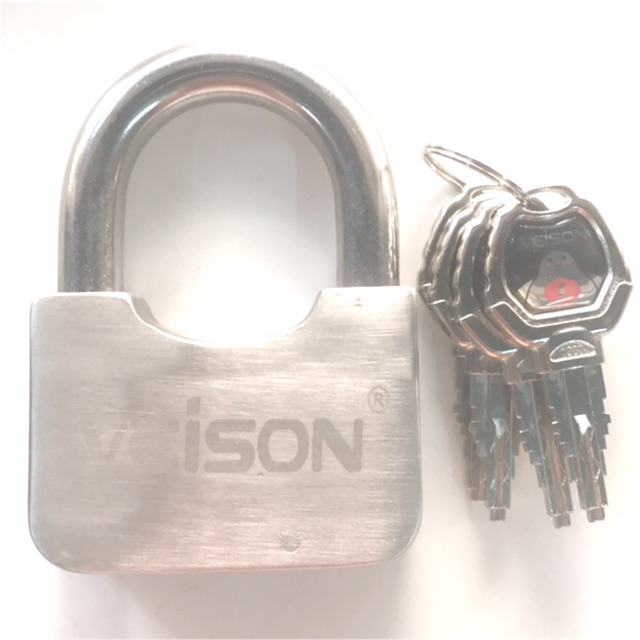 Ổ khoá VEISON 7 phân inox 304 càng thép chống cắt an toàn tuyệt đối ,ruột thép ,thách thức mọi loại trộm bẻ đoản,cắt ,cưa càng khoá👍Bộ sản phẩm gồm:1 ổ khoá,4 chìa khoá